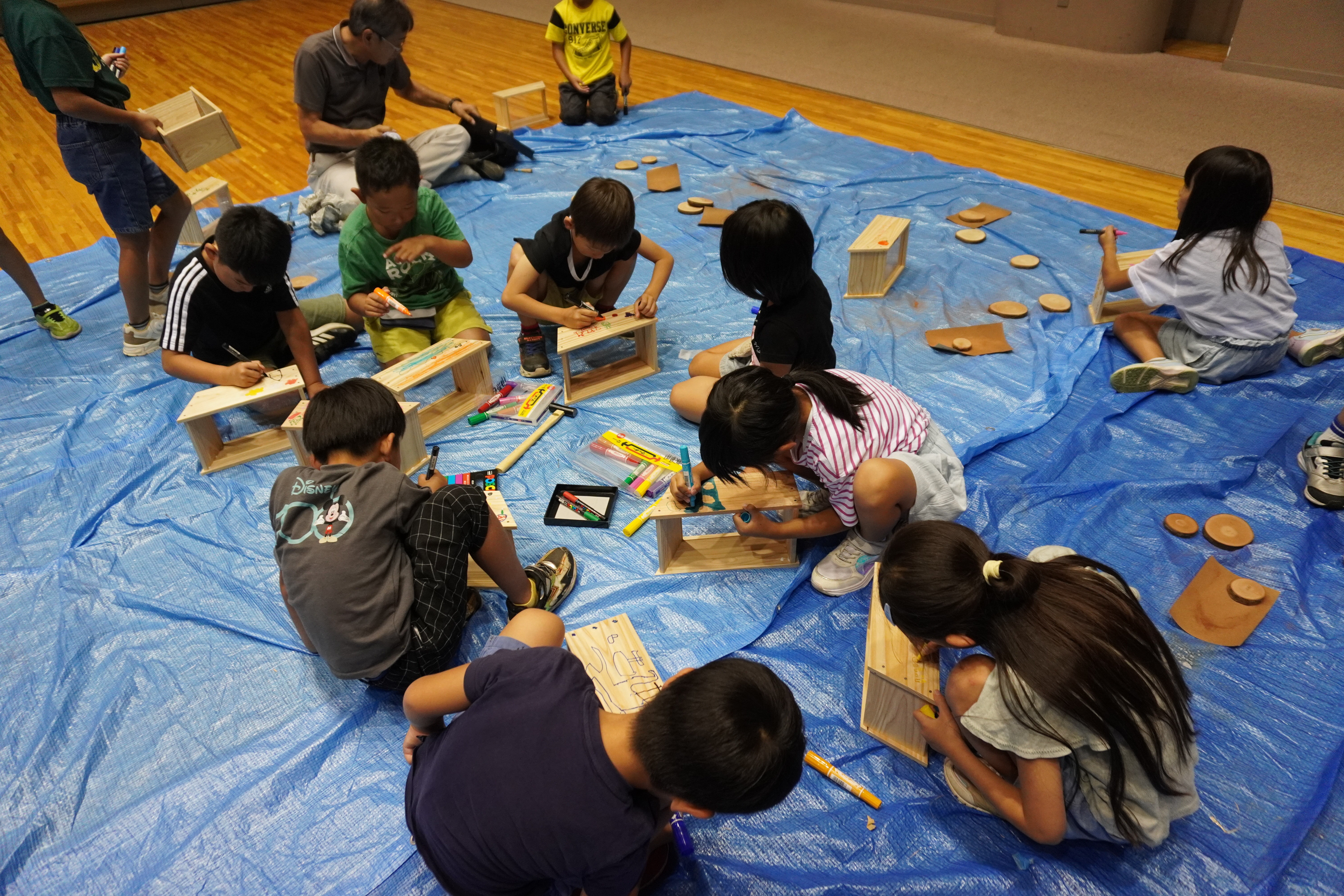 令和7年8月に、森林学習と地域産業への理解を深めることを目的に、白鷹町商工会建工部会が主催する小学生対象の木工教室が開催されました。町産木材を活用した「水中眼鏡作り」では、金槌を使った釘打ちなど慣れない作業に苦戦しながらも、建工部会の先生方の指導のもと、見事完成させました。